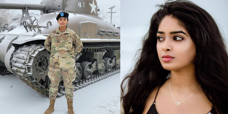 கடந்த 2021 ஆம் ஆண்டு வெளியான திரைப்படம் ’காதம்பரி’. சமூக கருத்தை வலியுறுத்தி உருவான திகில் திரைப்படமான இப்படத்தில் கதாநாயகியாக அறிமுகமானர் அகிலா நாராயணன். அமெரிக்கா வாழ் தமிழ் பெண்ணான இவர் கலை மீது இருந்த ஆர்வத்தின் காரணமாக தனது தனிப்பட்ட முயற்சியால் தமிழ் சினிமாவில் நடிகையாக அறிமுகமானார். நடிப்போடு பிரபல பாடகியாகவும் வலம் வந்த அகிலா நாராயணன், கலைத்துறையோடு தனது சாதனை பயணத்தை நிறுத்திக்கொள்ளாமல், ராணுவத்தில் இணைய வேண்டும் என்று முடிவு செய்தார்.