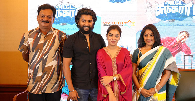 தெலுங்கின் முன்னணி நடிகர் நானி கதையின் நாயகனாகவும், மலையாள நடிகை நஸ்ரியா கதையின் நாயகியாகவும் நடித்திருக்கும் ‘அடடே சுந்தரா’ திரைப்படத்தின் முனனோட்டம் வெளியிடப்பட்டது. இதனைத் தொடர்ந்து பத்திரிகையாளர் சந்திப்பு நேற்று சென்னையில் உள்ள நட்சத்திர ஹோட்டலில் நடைபெற்றது. இதில் படத்தின் நாயகன் நானி, நாயகி நஸ்ரியா, இயக்குநரும், நடிகருமான அழகம்பெருமாள், நடிகை ரோகிணி ஆகியோர் கலந்து கொண்டனர்.