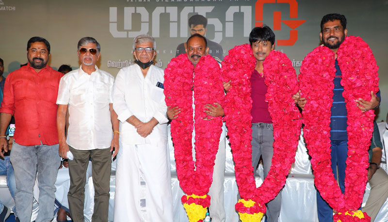 இயக்குனர் வெங்கட்பிரபு பேசும்போது, “இந்த படத்தின் கதையை சொன்னபோது உடனே ஒப்புக் கொண்ட சிம்பு, இந்த படத்தை பிரஷ்ஷா புது டீமோட வொர்க் பண்ணலாம்ன்னு சொன்னார்.. இந்த படத்தோட கதைய முதல்ல டைம் லூப் இல்லாமல்தான் தயார் பண்ணி இருந்தேன்.. ஆனால் அந்த சமயத்தில் என்ஜிகே, சர்க்கார் போன்ற படங்கள் இதே அரசியல் பின்னணியில் வெளியானதால், அதன்பிறகுதான் டைம் லூப்புக்கு கதையை மாற்றினோம். இடையில் கோவிட் காரணமாக இந்த படத்தை அப்படியே வைத்துவிட்டு, இதே சிம்பு, எஸ்.ஜே.சூர்யா கூட்டணியை வைத்து சிம்பிளாக ஒரு படம் பண்ணலாம் என்று முடிவு செய்தேன்.. சிம்புவும் அதற்கு ஓகே சொன்னார்.. ஆனால் தயாரிப்பாளர் சுரேஷ் காமாட்சிக்கு அந்த கதை பிடித்திருந்தாலும், மாநாடு படத்திலிருந்து நான் டைவர்ட் ஆக வேண்டாம் முதலில் அந்த படத்தை முடிப்போம் என உறுதியாக நின்றார்