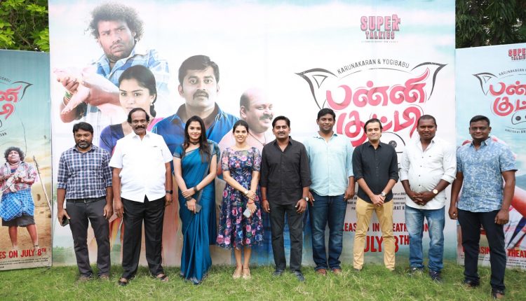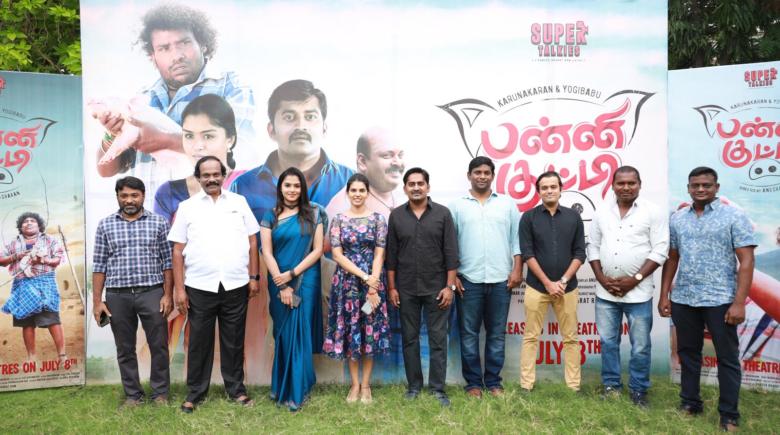 லைகா புரொடக்சன்ஸ் சுபாஸ்கரன் வழங்கும், சூப்பர் டாக்கீஸ் சமீர் பரத் ராம் தயாரிப்பில், இயக்குநர் அனுசரண் இயக்கத்தில், யோகி பாபு, கருணாகரன் முதன்மை பாத்திரத்தில் நடித்திருக்கும் திரைப்படம் ’பன்னிக்குட்டி’. ஒரு அழகான காமெடி டிராமாவாக உருவாகியுள்ள இப்படம் ஜீன் 8 ஆம் தேதி உலகமெங்கும் திரையரங்குகளில் வெளியாகிறது. இந்நிலையில் படக்குழு பத்திரிக்கை ஊடக நண்பர்களை சந்தித்தனர்.