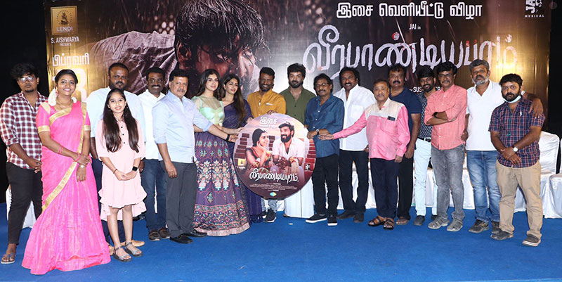 நடிகர் ஜெய் நடிப்பில், இயக்குநர் சுசீந்திரன் இயக்கத்தில், கிராம பின்னணியில் உருவாகியுள்ள படம் “வீரபாண்டியபுரம்”. நீண்ட இடைவேளைக்கு பிறகு கிராமத்து லுக்கில் தோன்றியுள்ள நடிகர் ஜெய் முதல் முறையாக இப்படத்திற்கு இசையமைத்து இசையமைப்பாளாராக அறிமுகமாகிறார். இப்படத்தை Lendi Studios சார்பில் S .ஐஸ்வர்யா தயாரித்துள்ளார். அனைத்து பணிகளும் முடிவடைந்த நிலையில் ரிலீஸுக்கு தயாராகிவரும் இப்படத்தின் இசை வெளியீட்டு விழா நேற்று படக்குழுவினர் கலந்துகொள்ள பத்திரிகை ஊடக நண்பர்கள் முன்னிலையில் இனிதே நடைபெற்றது.