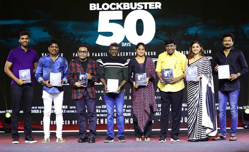 இவ்விழாவில் உதயநிதி ஸ்டாலின், இயக்குநர் மாரி செல்வராஜ், இசையமைப்பாளர்ஏ.ஆர்.ரஹ்மான், நடிகர் வடிவேலு, கீர்த்தி சுரேஷ் கலந்து கொண்டு படத்தில் பணிபுரிந்த கலைஞர்களுக்குப் பரிசுகள் வழங்கினர். ரெட் ஜெயன்ட் மூவிஸ் எம்.செண்பகமூர்த்தி, அர்ஜூன்துரை ஆகியோர் உடனிருந்தனர்.