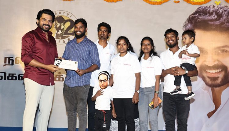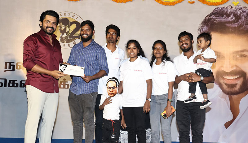 கடந்த அக்டோபர் மாதம் பிரம்மாண்டமாக நடந்தேறிய கார்த்தி 25 விழாவில் திரைக்கலைஞர் கார்த்தி சிவகுமார் இந்த சமூகத்திற்கு வெவ்வேறு தளங்களில் உதவும் வகையில் ஒரு கோடி ரூபாய் உதவித் தொகை அறிவித்தார். அதில் 25 சமூக செயற்பாட்டாளர்களின் செயல்களை கெளரவப்படுத்தும் விதமாக தலா 1 லட்சம் வீதம் 25 லட்சம் அளிக்க திட்டமிடப்பட்டது. அதன்படி, 25 பேருக்கு தலா ரூ.1 லட்சம் வழங்கும் விழா நேற்று சென்னையில் நடைபெற்றது.