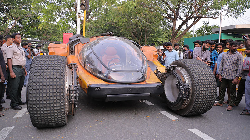 கற்பனையிலும் நினைத்து பார்த்திராத வடிவத்தில், மூன்று சக்கரங்களுடன், நவீன வசதிகளுடன், பார்த்தவுடன் எதிர்காலத்தை கண்முன் கொண்டு வரும் வகையிலான புஜ்ஜி வாகனம், பார்த்தவர்கள் அனைவரையும் வியப்பில் ஆழ்த்தியது.