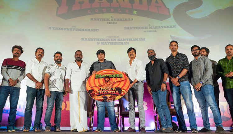 ‘ஜிகர்தாண்டா டபுள் எக்ஸ்’ திரைப்படத்தின் முதல் பாடலான ‘மாமதுர’-யை இன்று மதியம் 12.12 மணிக்கு இசையமைப்பாளரும் நடிகருமான ஜி வி பிரகாஷ் இணையத்தில் வெளியிட்டார். எஸ் ஜே சூர்யா, ராகவா லாரன்ஸ், தயாரிப்பாளர் கார்த்திகேயன் சந்தானம், இசையமைப்பாளர் சந்தோஷ் நாராயணன் உள்ளிட்டோர் நிகழ்ச்சியில் கலந்து கொண்டனர்.