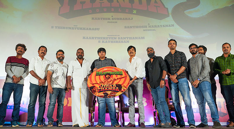 கார்த்திக் சுப்பராஜ் இயக்கத்தில் ஸ்டோன்பெஞ்ச் பிலிம்ஸ் தயாரிப்பில் பான்-இந்தியா படமாக உருவாகும் ’ஜிகர்தண்டா டபுள் எக்ஸ்’ இன்னும் சரியாக ஒரு மாதத்தில் தீபாவளி வெளியீடாக உலகெங்கும் உள்ள திரையரங்குகளில் வெளியாக உள்ள நிலையில், அதன் முதல் பாடல் வெளியீடும் பத்திரிகையாளர் சந்திப்பும் சென்னை சத்யம் சினிமாசில் இன்று நடைபெற்றது.