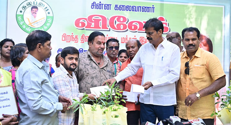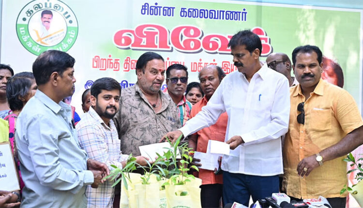 நடிகர் விவேக்கின் சமூக சேவைகளில் மரக்கன்று நடுவது முதன்மையானதாக இருந்தது. அதை நினைவுகூறும் விதமாக இன்று நடந்த நிகழ்வில் பலருக்கும் மரக்கன்றுகள் வழங்கப்பட்டன.