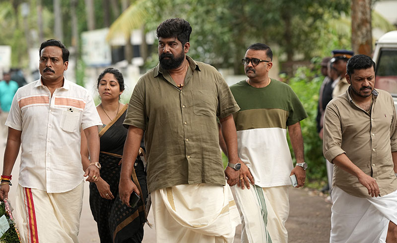 ஜோஜு ஜார்ஜ் வழக்கம் போல் தனது ஃபேவரைட் வேட்டி சட்டையில் இயல்பாக நடித்து கலக்குகிறார். மனைவியின் நிலை கண்டு கலங்குவதும், அடுத்த கனமே அதற்கு காரணமானவர்கள் மீது இருக்கும் தனது கோபத்தை கண்களில் வெளிப்படுத்துவது என அதிகம் பேசாமலேயே தனது உணர்வுகளை நேர்த்தியாக வெளிப்படுத்தியிருக்கிறார்.
