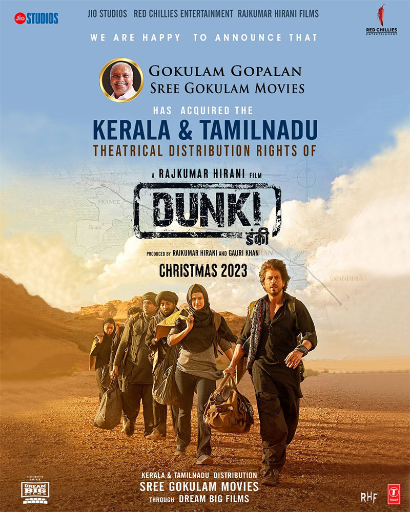 ‘ஜவான்’ படத்தின் மாபெரும் வெற்றிக்குப் பிறகு, மிகுந்த எதிர்பார்ப்பிலிருக்கும் ஷாருக்கானின் ‘டங்கி’ திரைப்படத்தினுடைய கேரளா மற்றும் தமிழ்நாட்டு விநியோக உரிமையை வாங்கியுள்ளது, ஸ்ரீ கோகுலம் மூவிஸ். இதில் ஷாருக்கான் அனைவரையும் மயக்கும் அட்டகாசமான கதாபாத்திரத்தில் நடித்துள்ளார். ரெட் சில்லிஸ் என்டர்டெயின்மென்ட் மற்றும் ஜியோ ஸ்டுடியோஸ் ஆகிய நிறுவனங்கள் சார்பில் தயாராகி, இயக்குநர் ராஜ்குமார் ஹிரானி எழுதி, இயக்கி, எடிட்டிங் செய்திருக்கும் இப்படம் டிசம்பர் 21 முதல், திரையரங்குகளில் வெளியாகிறது.